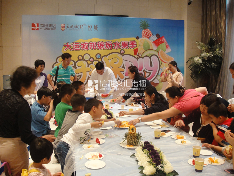 周末暖場均以親子為主打內容,信雅文化團隊為大運城邦精心組織與策劃了一場親子水果DIY活動,兩天營銷中心吸引了逾百人參加,現場氣氛火爆。希望通過親子暖場活動吸引孩子關注,從而帶動家長的參與,通過家長兒童的互動行為,帶動現場銷售。在稍嫌酷熱的四月,不少業主贊嘆工作人員很貼心,在炎熱的夏日為她們帶來了一絲清涼。活動現場,眾多業主與客戶紛紛參與到水果diy活動中去,在水果雕刻師傅的認真指導下,很多小朋友與家長一起投入水果雕刻的藝術中去,1小時過去,大家手中原有的蘋果、香蕉等變成了一件件精美的藝術作品。活動結束時,還有不少業主意猶未盡,希望大運城邦以后能多次舉辦此類活動。咨詢電話:0755-83928949